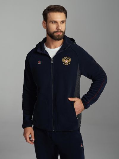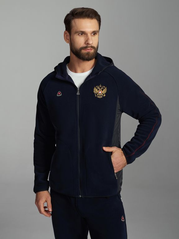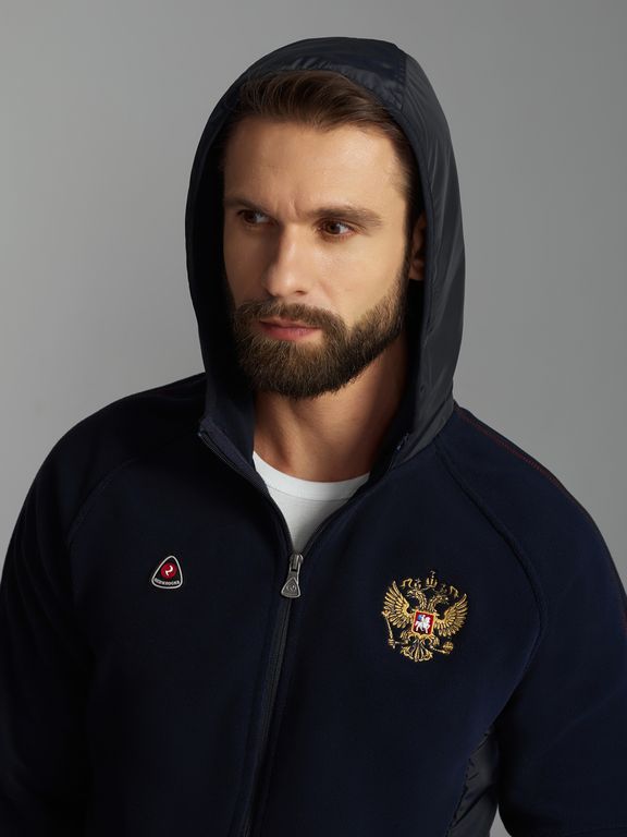 Костюм мужской флисовый 1166 синий, с гербом России.